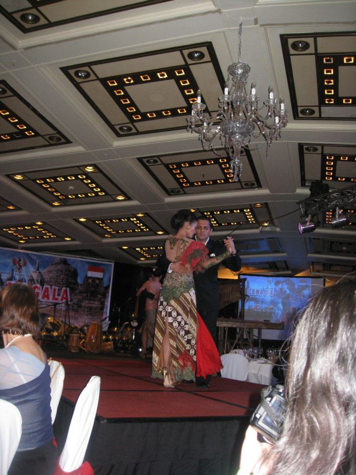 Diawali dengan pertunjukkan seni musik dan tari oleh delegasi kesenian dari Indonesia dan tim seni KBRI Buenos Aires. Disamping itu para tamu juga disuguhi santapan malam berupa kuliner Indonesia yang dipersiapkan oleh Chef Agus Saepudin (chef Hotel Niaga Club) yang didatangkan khusus dari Indonesia. Acara dilanjutkan dengan fashion show busana karya perancang muda Indonesia, Oscar Lawata. Dan yang tak kalah menarik adalah sesi interaktif angklung, dimana para undangan diajak untuk bermain angklung bersama-sama dari tempat duduknya masing-masing dituntun oleh salah seorang penari Indonesia. Diantara pertunjukan tersebut diatas, terdapat satu performance yang sangat menarik, yaitu penampilan tiga orang seniwati Indonesia yang dipimpin oleh Ratih Soe Kosasie, dari Jakarta Tango Club menari Tango berpasangan dengan maestro Tango asal Argentina, dimana sang penari wanita mengenakan busana kebaya ! Tentu saja hal ini menimbulkan decak kagum bagi para undangan, karena meskipun gerakan Tango terbilang sulit ternyata dapat ditampilkan dengan sempurna oleh mereka.